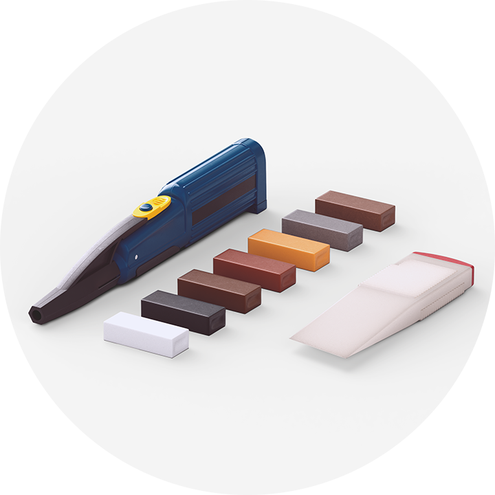 Ne vous laissez pas abattre par les dommages légers. Le kit de réparation Quick-Step propose les meilleurs outils pour recréer rapidement la couleur d’origine des lames endommagées.